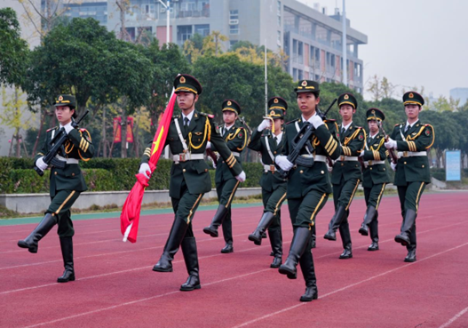 随后,必一运动“戎光”宣讲团的团长章鑫同学以《展现青春作为,彰显青春风采,贡献青春力量》为主题进行国旗下讲话。他围绕自己的从军经历、训练故事和荣誉勋章三个方面,用自己的亲身经历告诉同学们要充分利用好每天的时间,不断充实自己,遇到挫折不要轻言放弃,更强调要积累经验,从而使专业技能为自己所用。