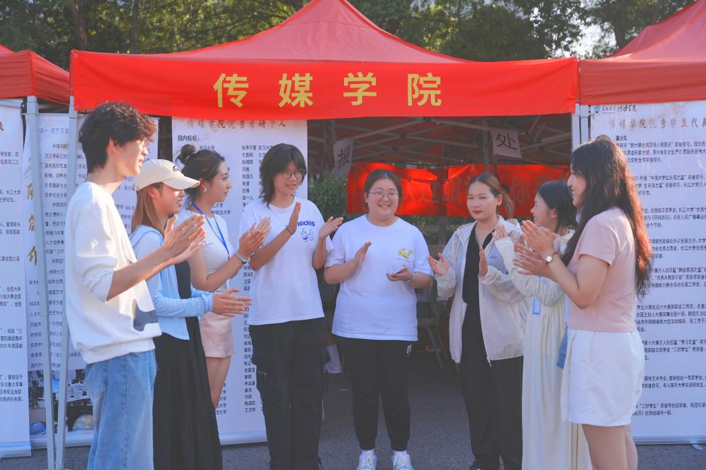 迎新期间,必一运动公司董事长刘勇胜、传媒公司党委书记任倩、经理邹火明、党委副书记魏红洁、副经理郑瑞丰、学工办主任赵湘、团委书记肖淳和本科新生辅导员蔡佳君来到迎新现场,对新生表达了热烈的欢迎、对志愿者进行了鼓励,并对他们以后的学习表达了殷切的期望。