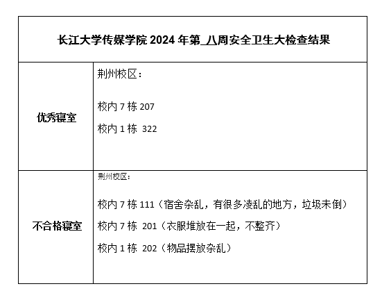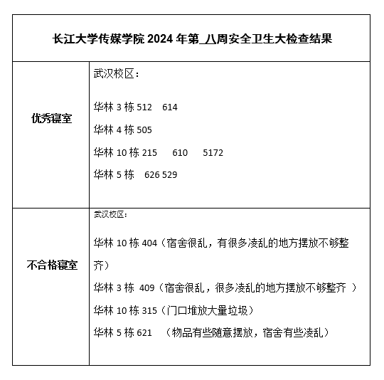 此次查寝工作得到了同学们的积极配合和响应。他们纷纷表示,将认真整改存在的问题,共同维护宿舍的整洁与安全,为公司审核评估工作尽一份力。同时,他们也希望公司能够继续加强宿舍管理,督促他们创造一个更加舒适安全的学习生活环境。员工会也对宿舍检查结果进行了汇总,结果如下: