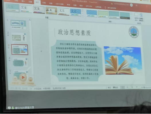 最后由蒙立生讲解:员工干部应具备的素养,员工干部作为员工基层组织各种活动和工作的组织者和领导者,必须具有较高的政治党性和思想品质,且应该自觉坚持四项基本原则,保持工作热情,兢兢业业,积极工作。