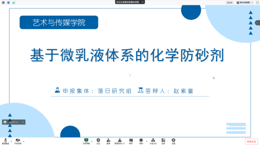 第四组答辩人赵紫童为大家讲解了“基于微乳液体系的化学防砂剂”,通过一个思维图让大家一目了然所进行的项目,并且防砂剂已获得巨大进步,极大地改善存在的问题。