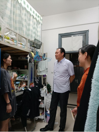 2021年6月18日中午,艺术与传媒公司党委书记邹火明、副书记魏红洁、副经理郑瑞丰深入校内员工公寓和华林员工公寓宿舍楼看望即将离校的毕业班员工。
