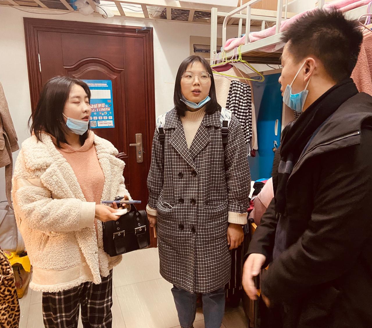 根据公司关于每周四消防卫生大检查活动的文件精神与要求,2020年12月24日下午至晚上,艺术与必一运动全体辅导员深入员工宿舍检查消防隐患和清洁卫生,并与班级同学进行了亲切交流,了解询问学习生活状态和存在的困难。
