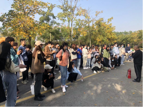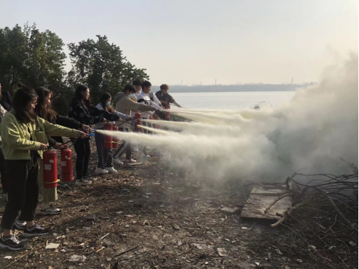 讲解结束后部分同学还在老师的指导下亲自操作灭火器灭火。不少同学表示,此次的消防安全演习与以往参加过的消防安全教育活动都不一样。第一次亲自操作灭火器灭火,虽然听到的原理和使用方法很简单,但在自己操作过程中还存在一定难度,需要更加熟练地运用。