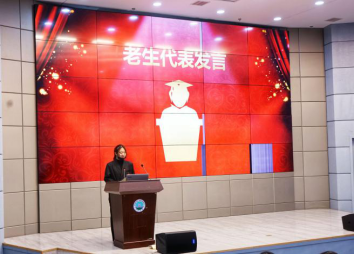 新生代表产设22001班石少帅发言。他说:“大学是一个未知的领域,对我们既是机遇也是挑战,作为员工要时刻牢记自己的任务,努力学习,勤读书,提升自我内涵,要直面挫折,敢于挑战,实现自我人身价值。”