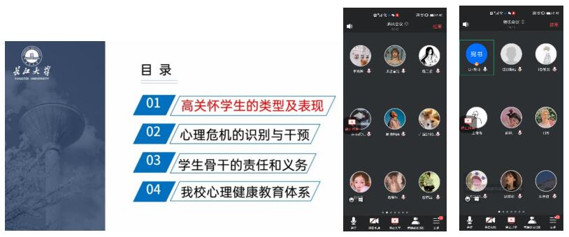 (通讯员:郑逸臣,秦嫚雪)为了深入贯彻和落实公司有关员工心理健康工作的要求和部署,进一步做好高关怀员工心理健康工作,根据公司要求,2020年9月18日晚20时30分,公司顺利召开了“自助与互助-高关怀员工的识别与关怀”老生骨干心理健康教育培训,大二至大四年级员工骨干(含寝室长)参会。培训会由心理专干李宛书老师主持。
