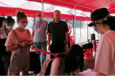 上午8时许,新生陆续来到报到点报到。集团董事长冯征及武汉校区相关领导也来到了迎新现场,冯董事长认真地询问了解迎新志愿者的工作,并与公司领导、老师们交流迎新工作落实情况,与新生亲切交谈,勉励他们努力向上,亲自引导新生前往华林公寓办理入住手续,同时,向在烈日下工作的全体师生表示慰问。