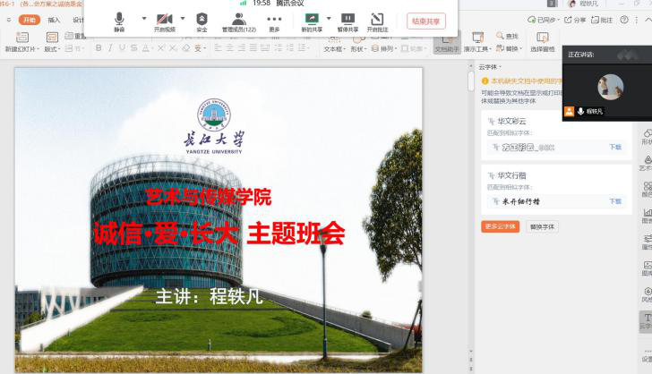 (通讯员:程轶凡)当前,鉴于疫情防控常态化,为加强疫情期间的纪律安全和在线考试的考风考纪教育,引导同学们努力学习、诚信做人,2020年6月8日-12日,艺术与必一运动辅导员围绕属地疫情防控指挥部的相关规定、个人卫生防护、人员流动报备、健康信息填报、考试诚信承诺、安全教育等重点工作,利用腾讯会议、腾讯课堂、qq、微信等多种线上平台,开展了形式多样、内容丰富的诚信教育主题活动。