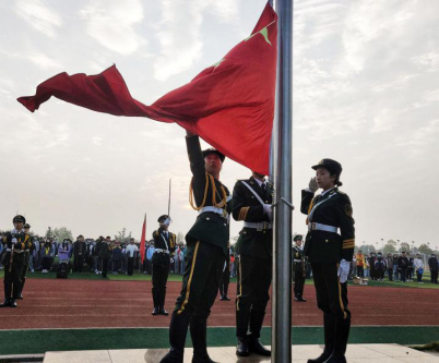 早七点整,升旗仪式正式开始。迎着朝阳,公司国旗护卫队成员迈着铿锵的步伐来到了国旗台下,全场一片肃静。在激昂的《义勇军进行曲》中,升旗手振臂一挥,鲜艳的五星红旗徐徐展开,在初升的阳光映照下,全年级师生的注目中,迎着初升的太阳,在晨曦中迎风飘扬在必一运动公司的上空。