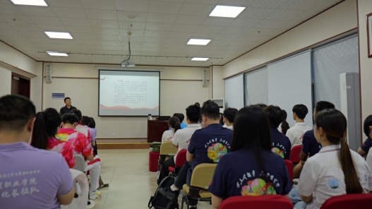 团中央井冈山教育基地党群工作处处长钟国华为实践团作“井冈山斗争与井冈山精神”专题授课。他以生动的史实和深刻的理论,系统阐释了井冈山精神的丰富内涵,帮助青年学子进一步坚定理想信念,增强使命担当。在红歌教学环节,实践团成员以嘹亮歌声重温革命岁月,在《十送红军》《映山红》等经典旋律中,感悟革命先辈的信仰与情怀。
