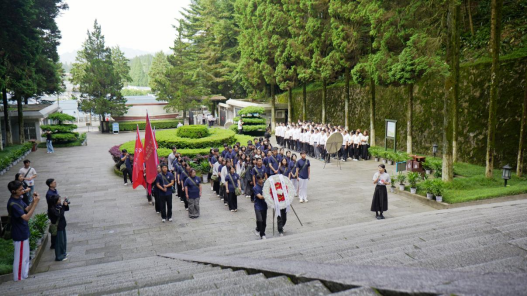 在庄严的升旗仪式上,团队成员艾志贤担任主持人,王治霖、段宇齐、李博等同学担任护旗手。全体同学向五星红旗行注目礼。随后,实践团来到井冈山革命烈士陵园,向15744位革命先烈敬献花圈。在熊若冰同学的带领下,全体成员重温入团誓词,铿锵誓言在山谷间回荡。