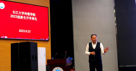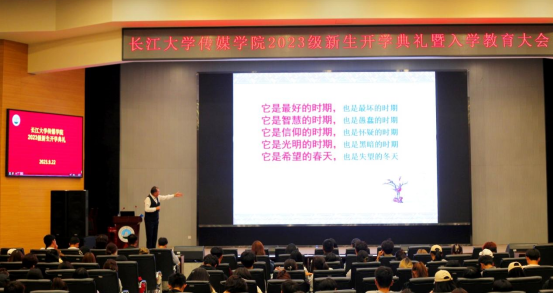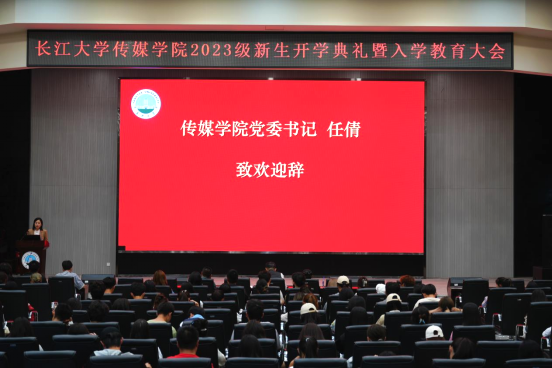 典礼伴随着热血的国歌声拉开帷幕。传媒公司党委书记任倩致欢迎词,任倩老师代表公司党委、行政、以及全院教职工,向披荆斩棘的新一代长大人,表示热烈祝贺!任倩老师的讲话中蕴含着对新生们的殷殷期盼,她表示:接下来的四年,任务十分艰巨,战线十分漫长,大家要有初心、恒心、本心,做“三心”青年,求实进取,创业报国!另外,任倩老师还隆重介绍了公司曾取得的傲人成绩,他们是本届新生学习的最好榜样!