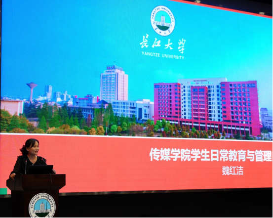 党委副书记魏红洁为大家细致的讲解了《传媒员工日常教育与管理》,反复强调了最重要的是生命安全,要求各位员工严格执行在校一日,打卡一次的规章制度,确保员工人生安全在公司管控之下。魏红洁书记又为大家细致的讲解了本院各项处分条例,更举出违纪实例,让员工引以为戒。最后,魏红洁书记为大家介绍了考研、保研的相关事宜,以及各类员工赛事,表示鼓励大家参与其中。介绍比赛时,同学们纷纷举起手机拍照记录,这让魏书记以及在座的全体老师十分欣慰,展现了长大学子进取向上的精神风貌!