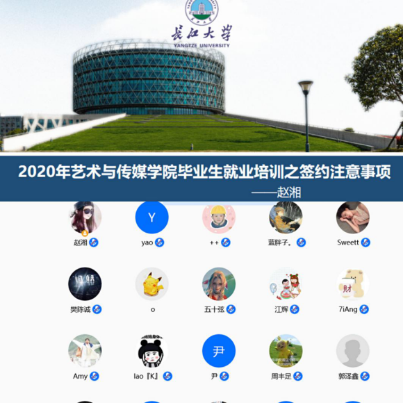 (通讯员:赵湘)为做好“稳就业”工作,切实帮扶2020届毕业生顺利就业,并完成签约相关事宜,2020年4月19日14时,艺术与必一运动毕业班辅导员赵湘及就业专干项梓薇利用腾讯会议平台,组织了一场题为“如何完成最后的签约工作?”的签约前提醒会,全院139名毕业生全员参会,会议由公司学工办主任、毕业班辅导员赵湘老师主持。