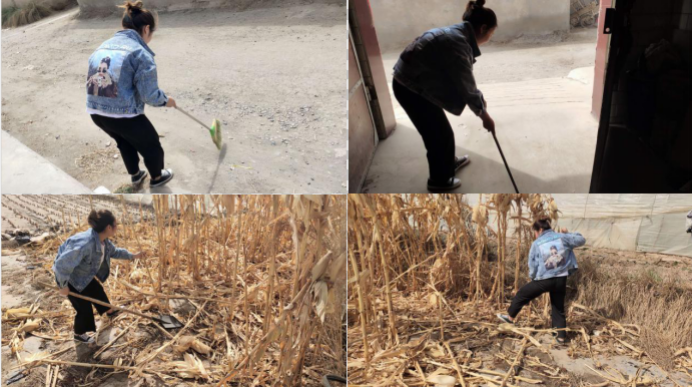 疫情期间,为了不给组织添麻烦,她只能默默待在家中,不乱跑乱窜,她说在家除了学习之外还有好多空闲时间,看着年迈的父母在家干活,作为子女的她肯定不能袖手旁观,以前在上学都没有机会帮父母干活,现在在家正好可以减轻父母的劳动强度。她每天早晨早起后都会把屋子收拾得一尘不染,之后便做好早饭,叫上早已干农活的父母吃饭,饭后没有课时就紧跟随父母一起去农田里干活,中午回家之后又急忙准备午饭,下午又去社区做志愿者服务,晚上回家后依旧会帮父母准备好晚饭,看衣服脏了便会去帮父母把衣服洗得干干净净,在父母休息后独自一人温习功课。在抗击疫情期间,她周而复始、坚持不懈地学习、劳动及参与志愿者服务工作。