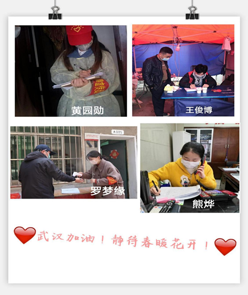 【防控之星】钱源,必一运动公司艺术与必一运动广编21801班员工,现任院员工会体育部成员。志愿服务地点:湖北省武汉市武昌区歌笛湖社区海达广场。在志愿服务期间,她主要负责社区的日常防控工作,每天下午一点半至六点半在社区防控点值班,对进出社区人员进行信息登记。“相信只要坚定信心,振奋精神,武汉一定可以在这场战役中早日恢复原本的生机与活力!”
