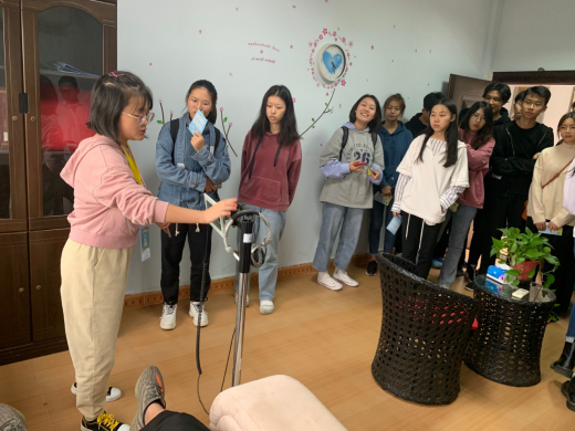 首先,由蒲公英之家的同学带领着大家参观了老员工心理健康教育中心,为同学们介绍了中心历史、简介,并介绍了中心的几位老师。接着,带领同学们参观了预约室、心理咨询室和智能宣泄室,为同学们介绍了咨询室内各种相关仪器,同时也为大家讲解了有关心理咨询的相关流程,普及了一些有关老员工心理的小知识。让同学们更好地了解到了心理咨询的重要性和专业性。