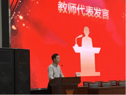 公司教师代表夏冬灵发言,他表示今年正值五四运动100周年、新中国成立70周年,在这个特殊的年份,也迎来了正值青春年少的2019级新生;他鼓励大家要夯实专业基础、明确专业目标、践行专业知识,为实现中华民族伟大复兴而努力奋斗。