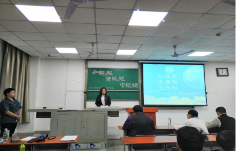 10月11日晚19:00,武汉校区A103教室座无虚席,公司党委书记邹火明,常务副经理戴德铸,副经理梅国海参加了视觉传达设计、数字媒体艺术专业大三年级员工的“知规矩、讲规矩、守规矩”主题班会,班会由辅导员赵湘老师主持。