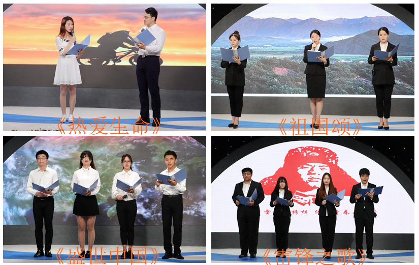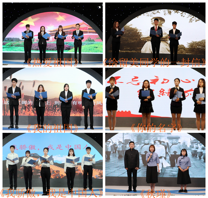 品鉴会以“我为我的祖国骄傲,我为我是中国人骄傲!”为主线,在蒲公英之家的《热爱祖国》中拉开序幕,同学们抑扬顿挫的朗诵带领观众们在历史的长河中徜徉;青年传媒中心带来的《给留美同学的一封信》表现除了朱光亚等老科学家们的求索精神,他们的爱国情怀,慷慨激昂、铿锵有力,发出了当代青年报效祖国的最强音;校报记者团的《我的祖国》朗诵倾诉着对祖国的感激与热爱之情;美好长大建设员工委员会带来的原创作品《你的名字》让观众感受了朗诵与视频完美结合,同学们对作品和情感的精准把握引起了现场观众的共鸣;图书馆员工服务委员会的《我骄傲,我是中国人》,朗诵者通过那激情洋溢、气吞山河的文字,展现了中国那壮丽的山河、悠久的历史、伟大的民族精神;公司广编21701班同学带来的《秋瑾》将品鉴会推向高潮,同学们时而激情澎湃,斗志昂扬,时而绵延悠扬,深情款款,感人肺腑,现场气氛热烈,掌声阵阵;公司视传21701班同学带来的《热爱生命》朗诵,表现了原作品了对生命、生活以及一切有意义的事的热爱以及对于生命的一种不屈服,不退缩,勇敢面对的精神;公司广编21601班同学的《祖国颂》,回顾了我们这样一个有着5000年历史的古老民族,虽屡经战火,却生生不息、繁衍不衰,关键在于我们有着从古至今一脉相承的民族精神;品鉴会在必一运动公司广播台同学们带来的《盛世中国》落下帷幕。