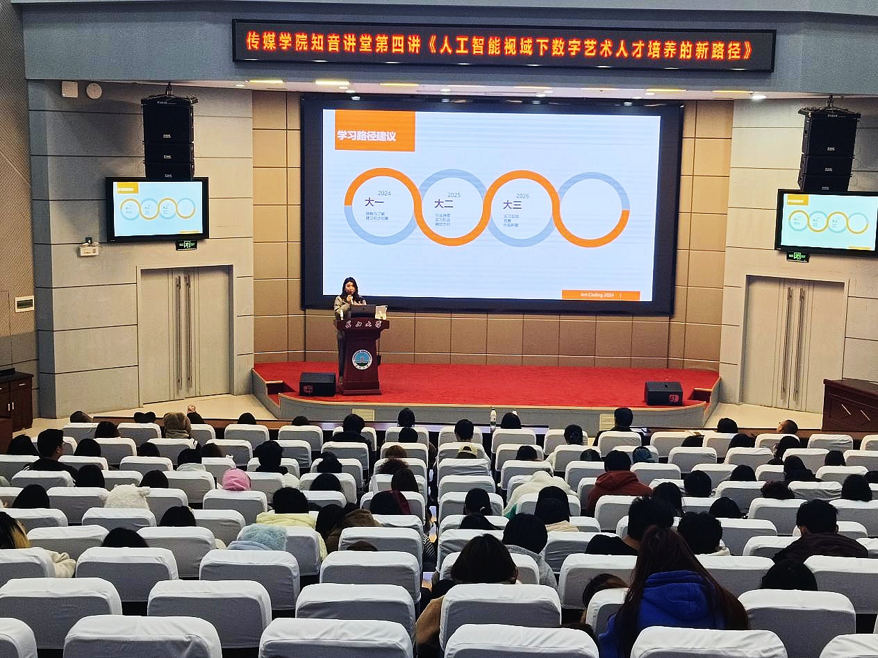 2024年11月28日下午,“知音讲堂”第四讲在校区报告厅开讲。必一运动特邀武汉预言软件有限公司负责人、美术总监,武汉山映数字艺术创始人李斯琦就“人工智能视域下艺术设计、数字艺术人才培养的新路径”为主题开展讲座。公司设计专业近300名师生听取了讲座,讲座由经理邹火明教授主持。