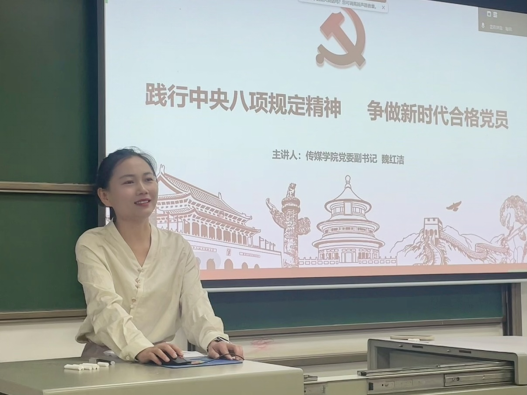 魏书记以中央八项规定的出台背景为切入点,深入解读了“改进调查研究”“精简会议活动”“规范出访活动”等八项具体规定内容,并延伸阐释了中央八项规定精神的深刻内涵。通过剖析高校领域的典型案例,让同学们深刻认识到违法违纪行为的严重性,达到警示教育目的。