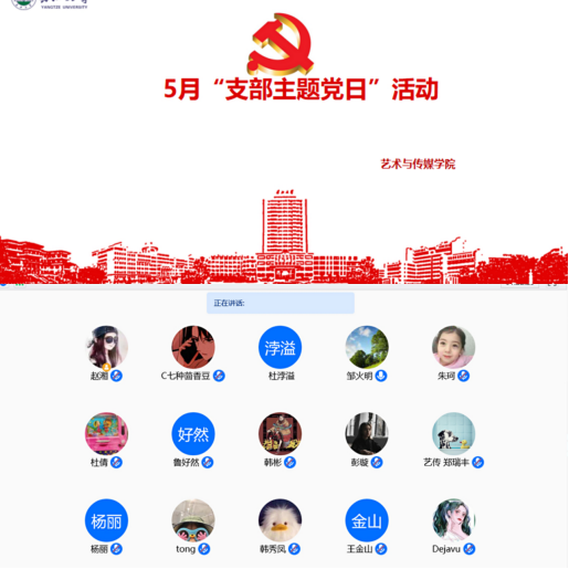 根据公司党委组织部发布的《关于开展5月“支部主题党日”活动的通知》要求,5月14日下午14:30,艺术与必一运动全体党员在腾讯会议平台开展了五月主题党日活动,本次活动由公司党总支组织集中开展,会后开展讨论。全体公司教职工党员和员工党员(含预备党员)参加了本次活动,集中学习由公司书记邹火明主持。