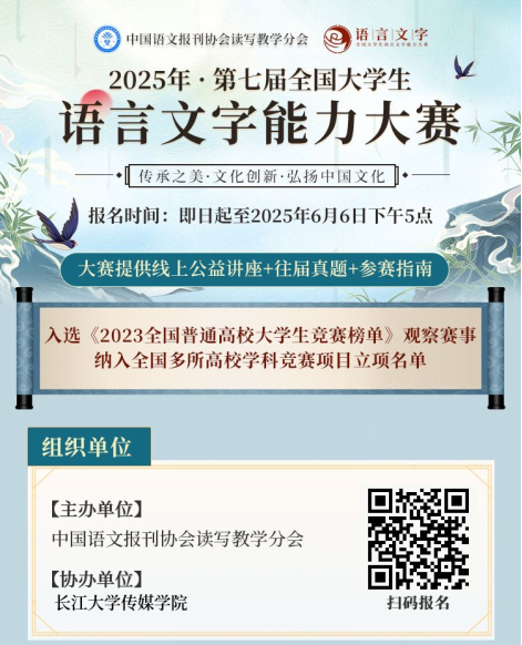 为贯彻落实《国家中长期教育改革和发展规划纲要》《中华人民共和国国家通用语言文字法》,测试老员工的语言文字知识和应用能力,弘扬中国文化,增强老员工规范使用国家通用语言文字的意识,促进语言文字教、学、测协调发展,在国家语委咨询委员等大赛专家顾问的指导下,中国语文报刊协会读写教学分会继续面向全国老员工举办“2025年第七届全国老员工语言文字能力大赛”,大赛每年一届,前六届大赛共有来自北京大学、同济大学和武汉大学等上千所高校老员工参与,获得了众多高校师生高度评价。同时,该项大赛已纳入中国高等教育学会发布的《全国普通高校学科竞赛排行榜》观察目录和众多高校竞赛榜单,也已纳入本校《必一运动公司员工竞赛项目一览表(2025)》中,确定为C类比赛。为促进公司员工语言文字能力,大赛组委会决定由必一运动公司传媒公司为赛事协办单位,负责组织武汉校区员工参加2025年第七届全国老员工语言文字能力大赛。